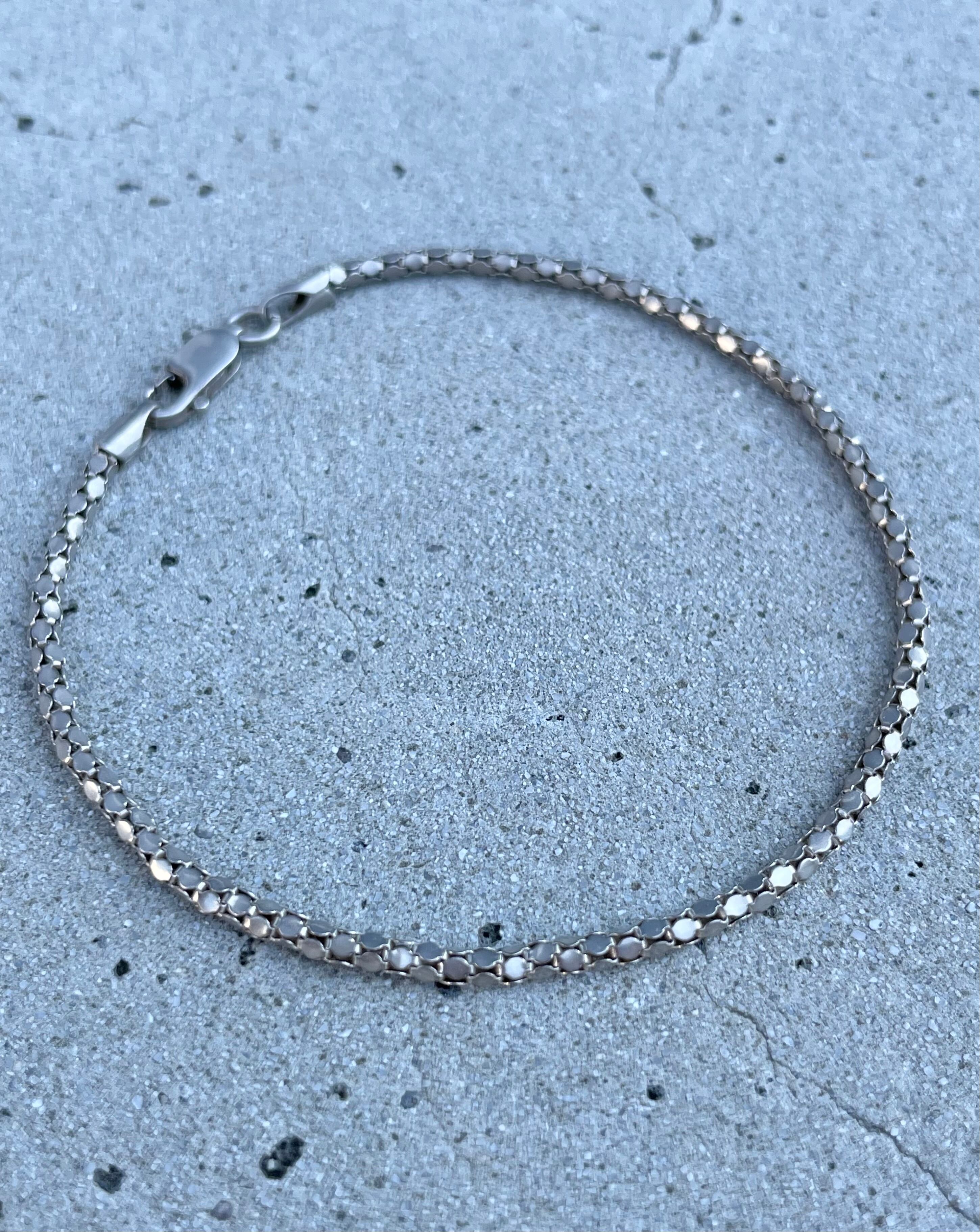 ヴィンテージのイタリアシルバーのブレスレット。丸みのあるロープタイプのチェーンで細身です。刻印もあり目立った傷はみられず状態は良好です。