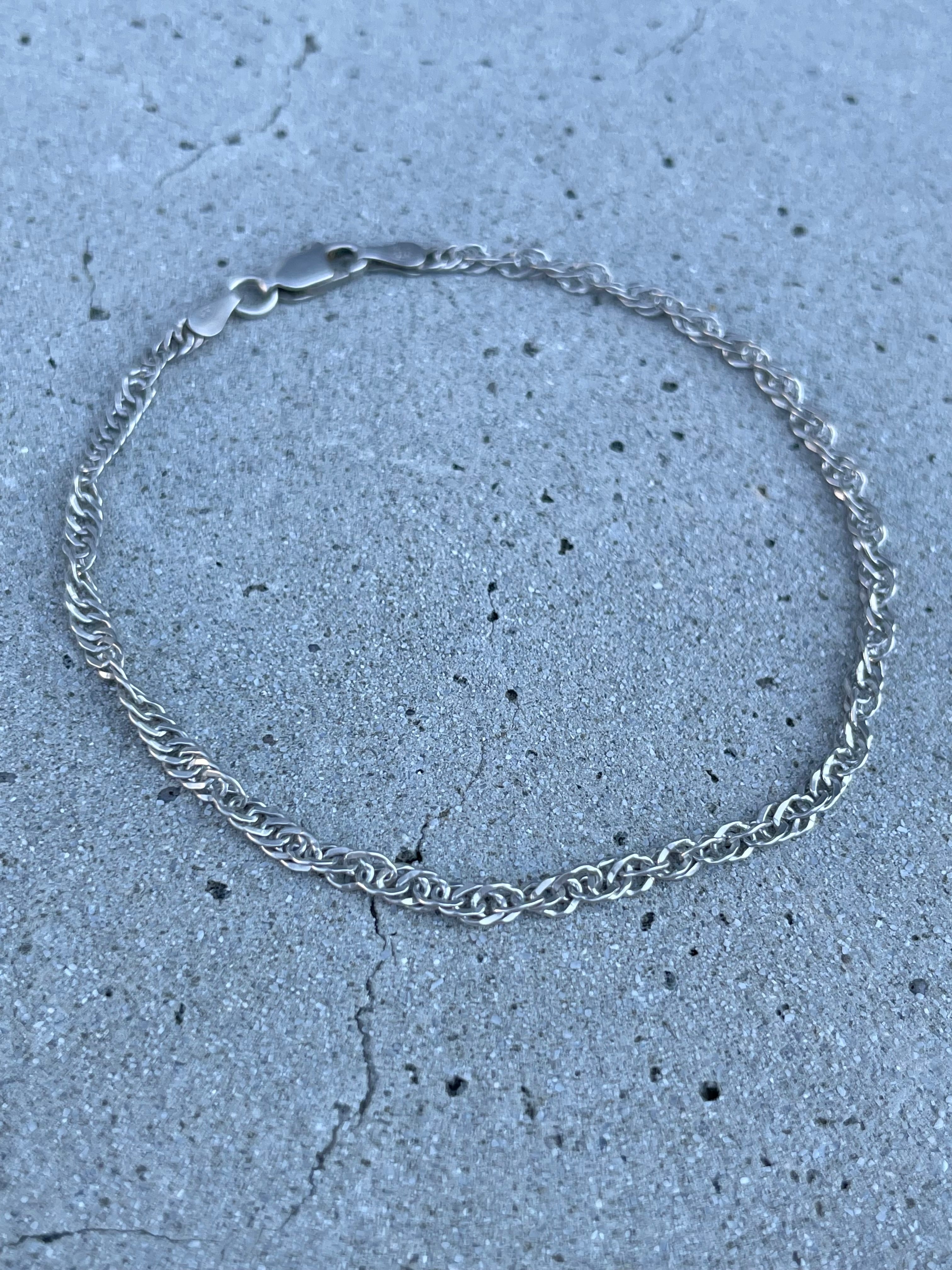ヴィンテージのイタリアシルバーのブレスレット。細身のチェーンで肌にのせると緩やかにツイストするデザイン。手元が華やかに。刻印もあり目立った傷はみられず状態は良好です。