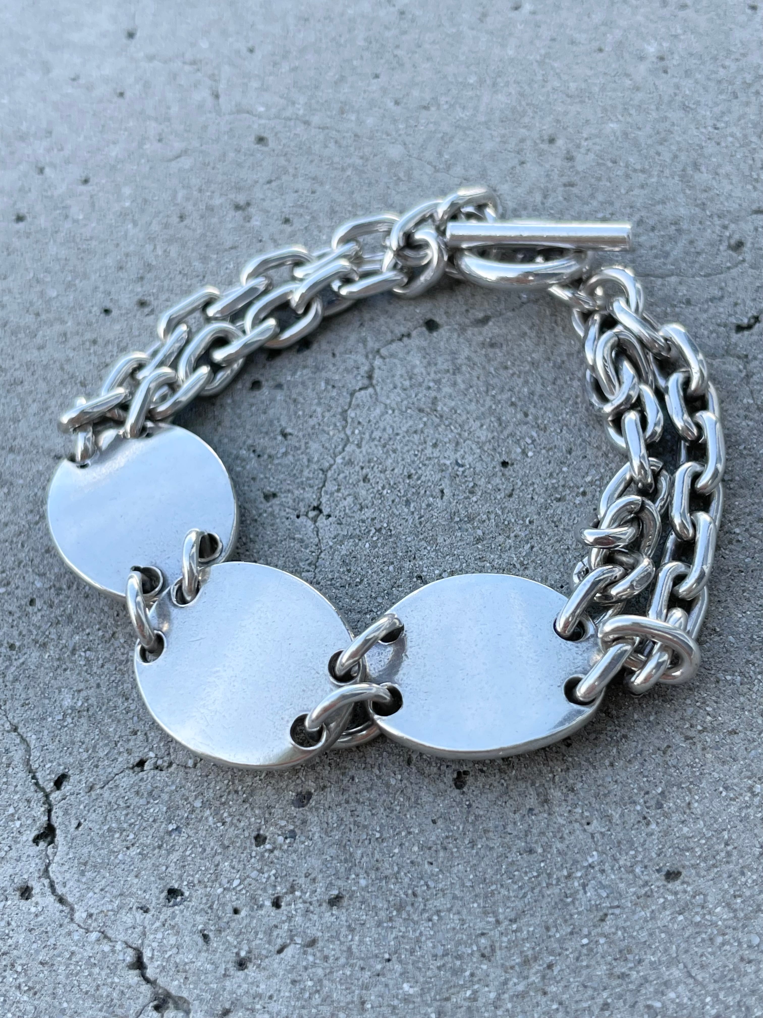 ヴィンテージのメキシコシルバーのブレスレット。そうそう見ないレアなデザインが入荷しました。シンプルにもヴィンテージなコーデにも相性は◎なアイテムは完売必至の予感。刻印もあり目立った傷はみられず状態は良好です。