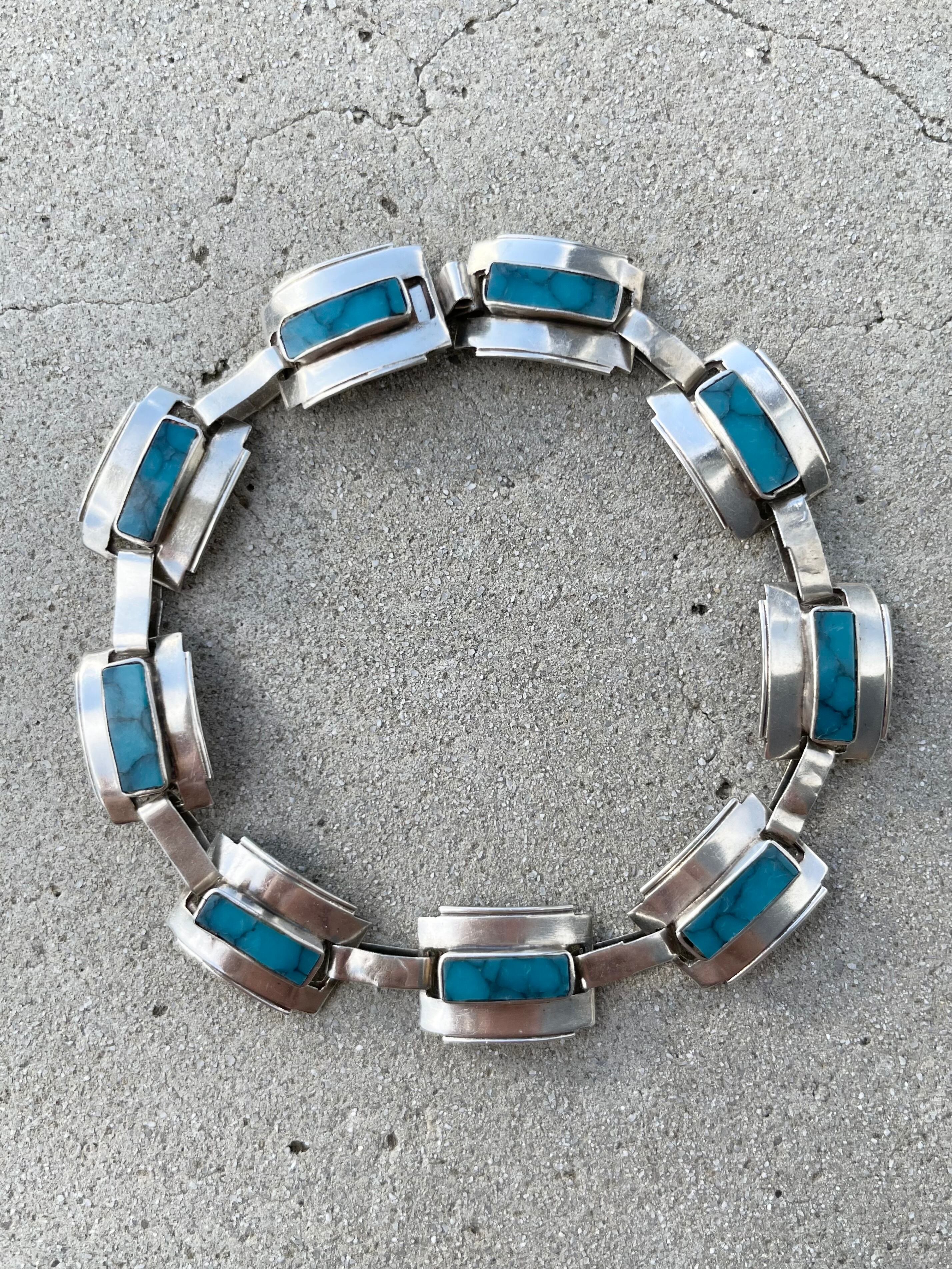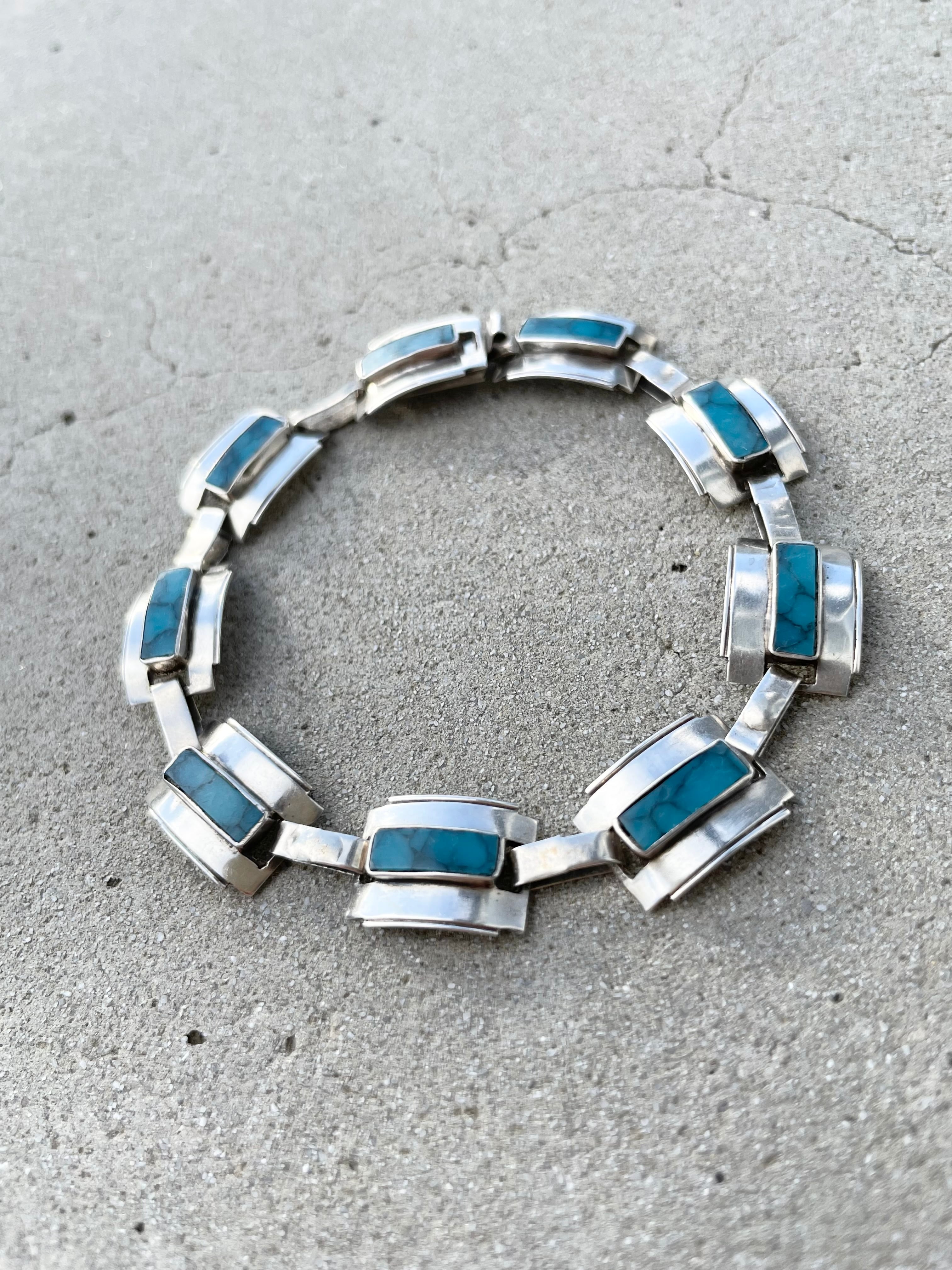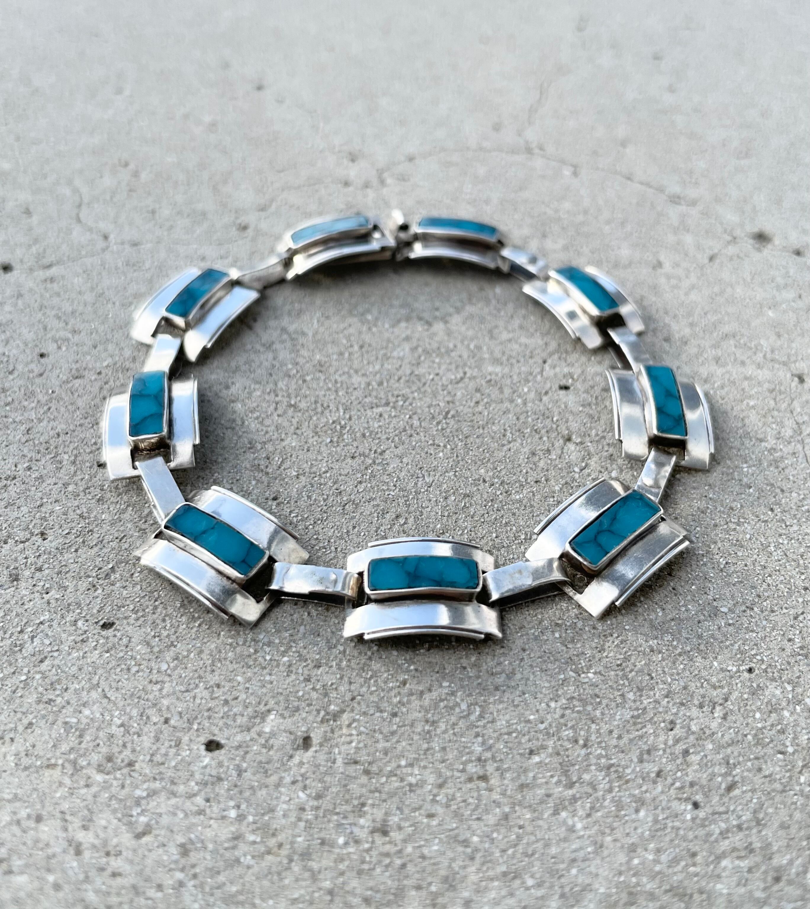 Vintage Mexico Silver 925 Turquoise Inlay Bracelet
