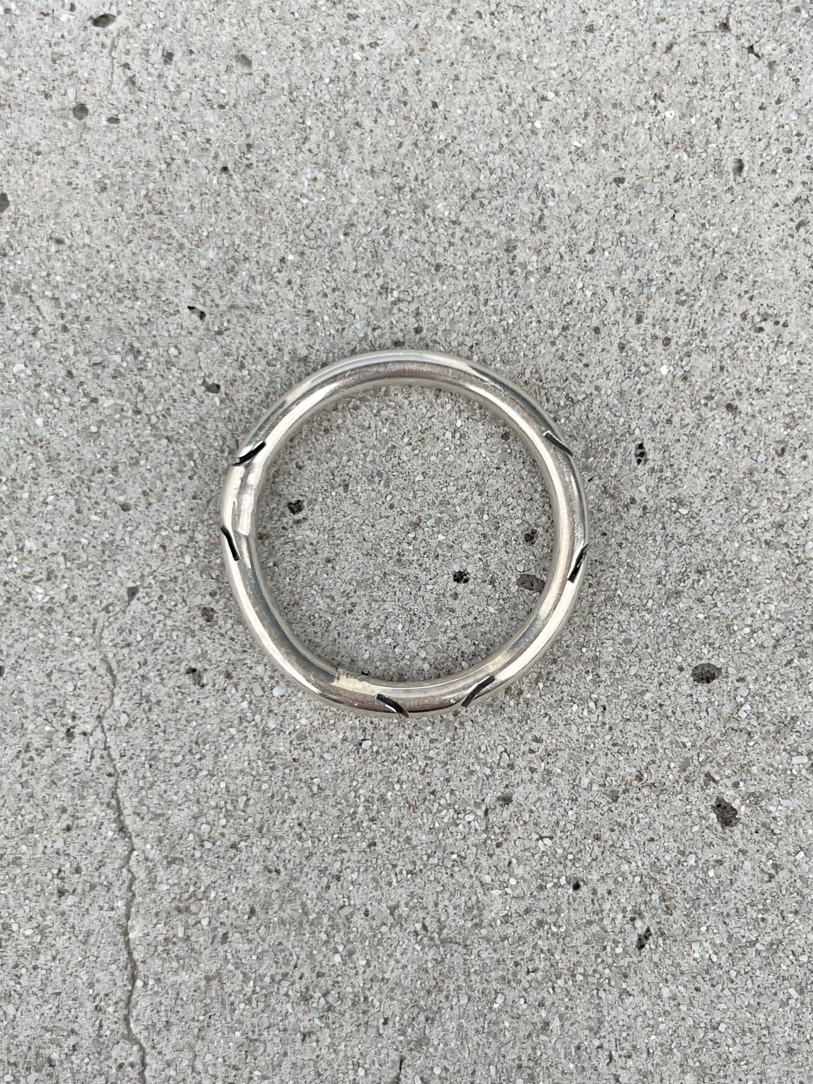 ヴィンテージのメキシコシルバーのリング。トライバルな模様が3箇所にあり、ツルッとしたシンプルさの中に一味プラスしています。着用に差し支えるような傷はみられず状態は良好ですが、刻印が消えてしまっているため破格でご提供いたします。