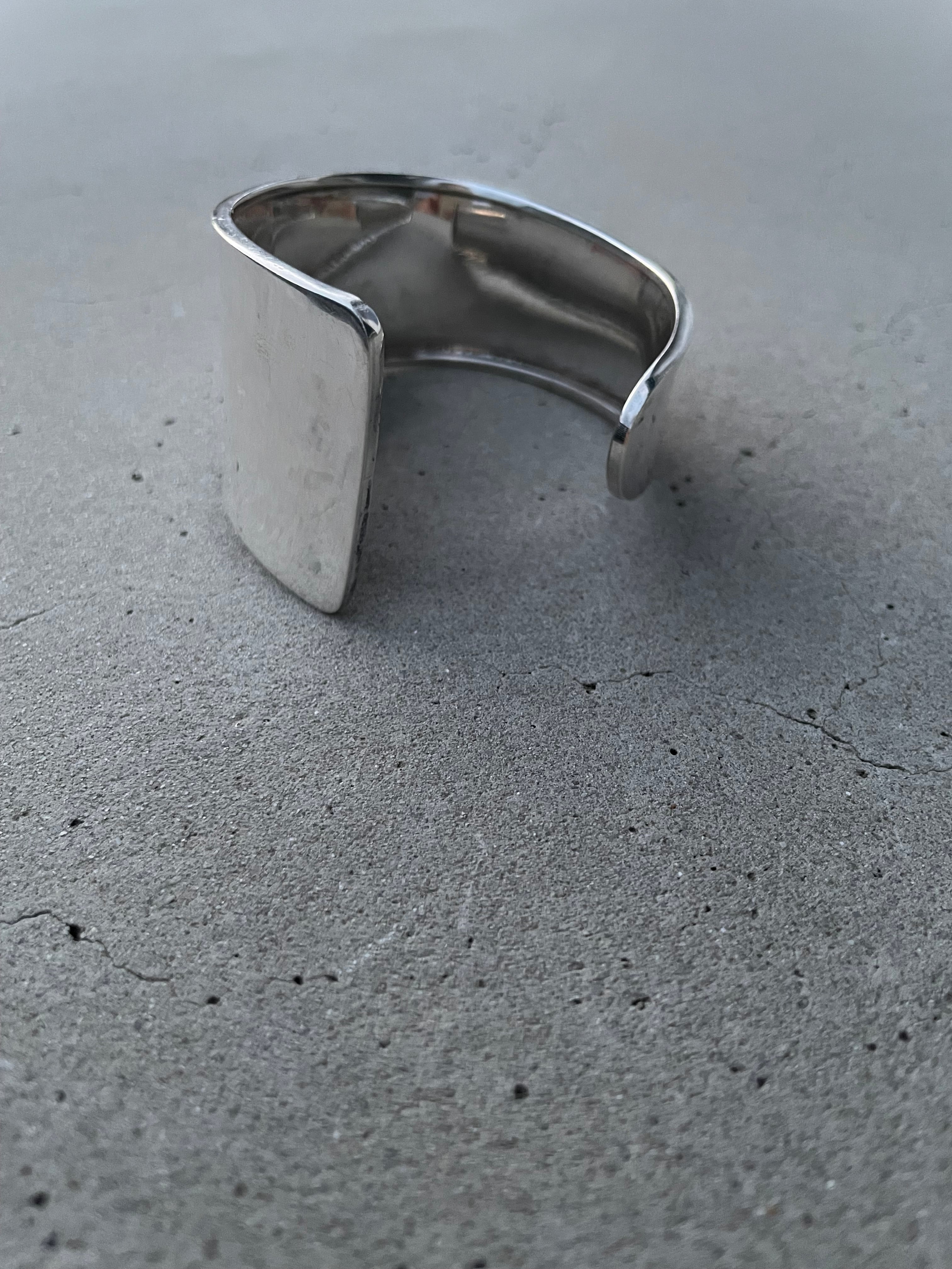 ヴィンテージのメキシコシルバーのカフバングル。最大の特徴はなんと言ってもこのアシンメトリーなデザイン。刻印もあり、目立った傷はみられず状態は非常に良好です。