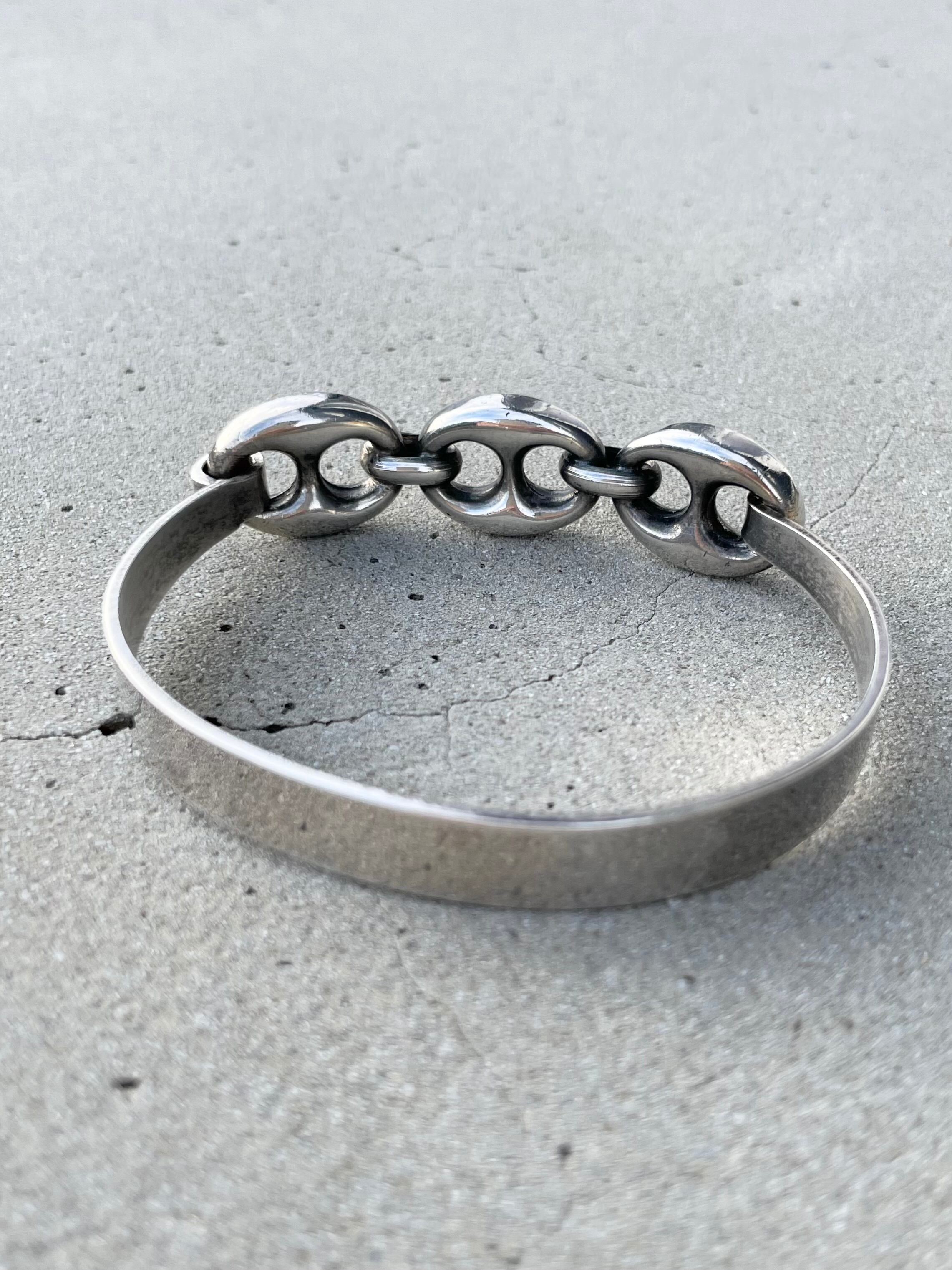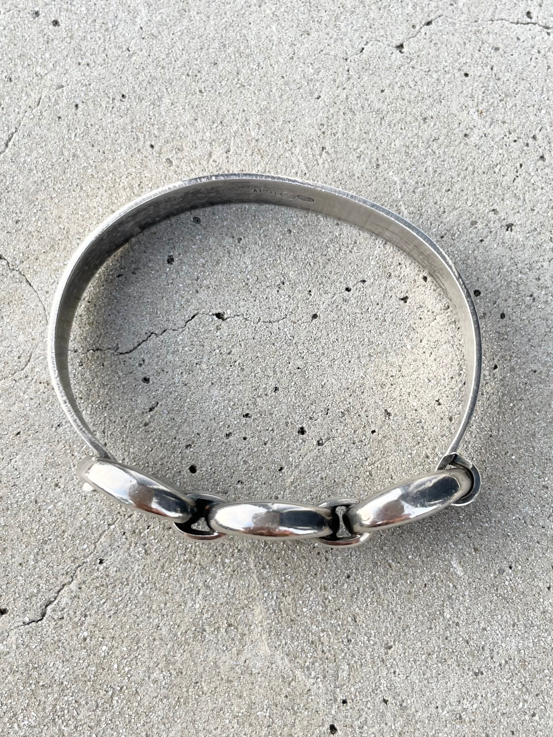Italy製のヴィンテージブレスレット。人気のマリナーリンクデザインです。一箇所開閉できるポイントがあり、ヒンジでひっかけるタイプのブレスレットで、留める穴で2段階のサイズ調整が可能です。大きなダメージなく状態は良好です。
