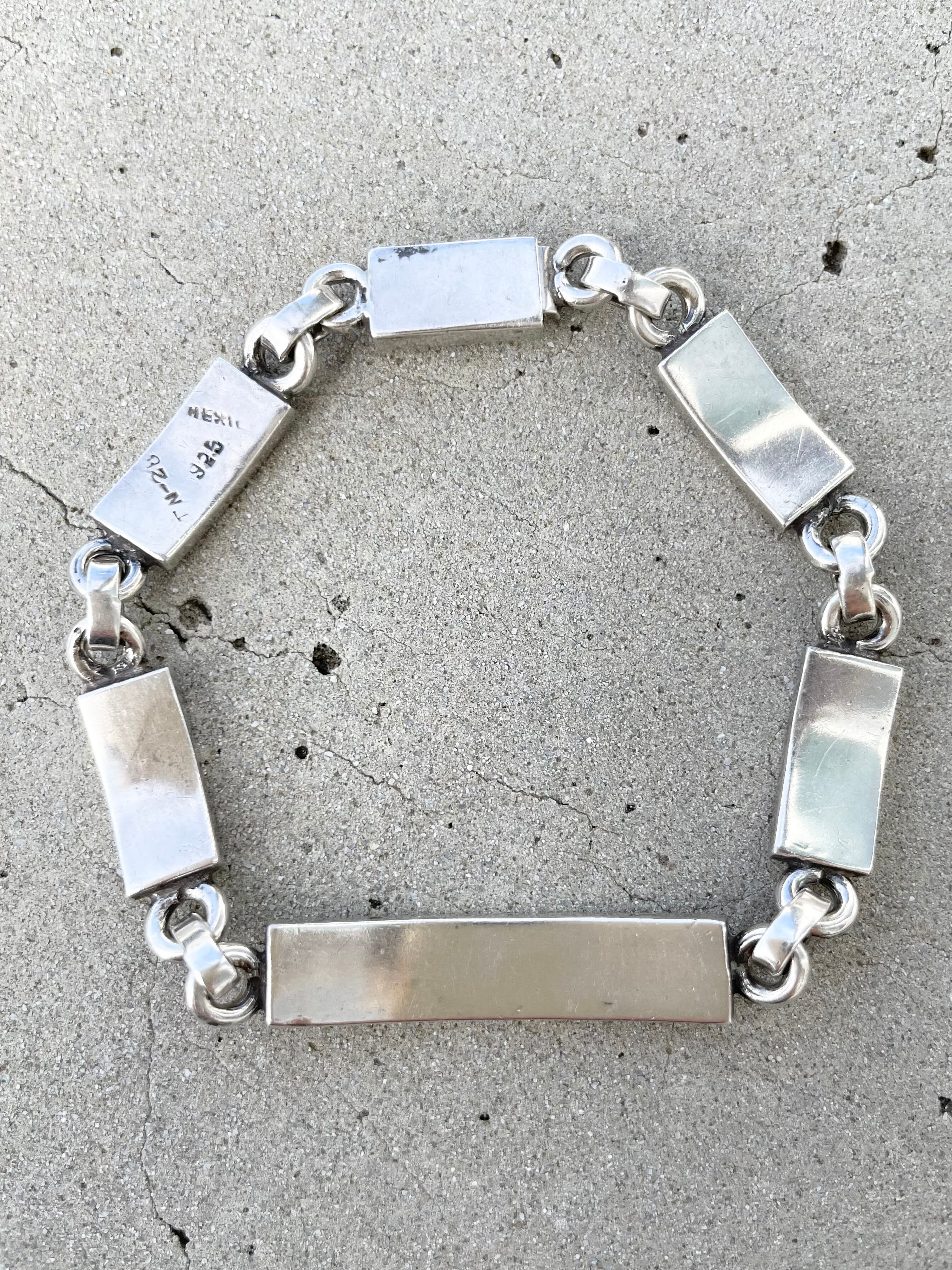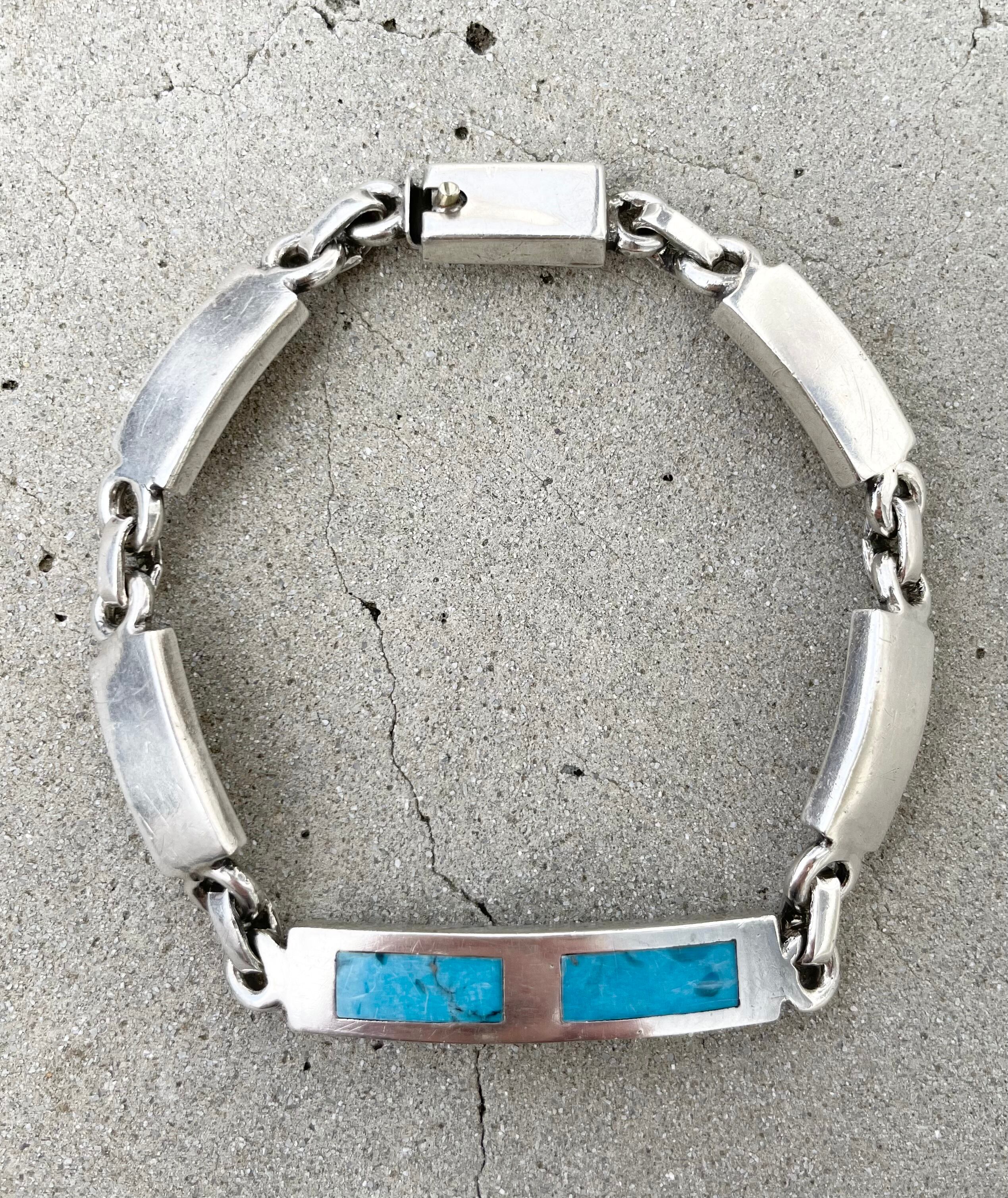Vintage Mexico Taxco Rectangle Turquoise Bracelet Silver 925