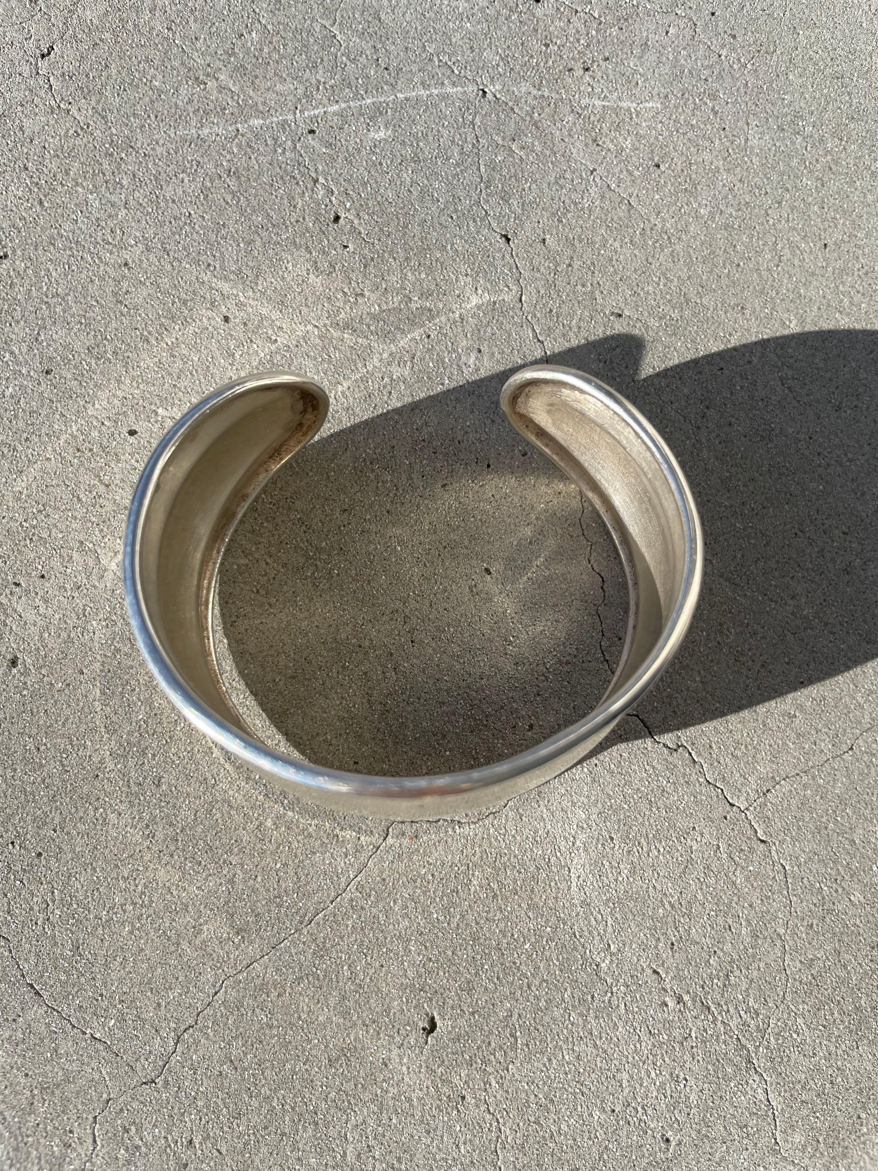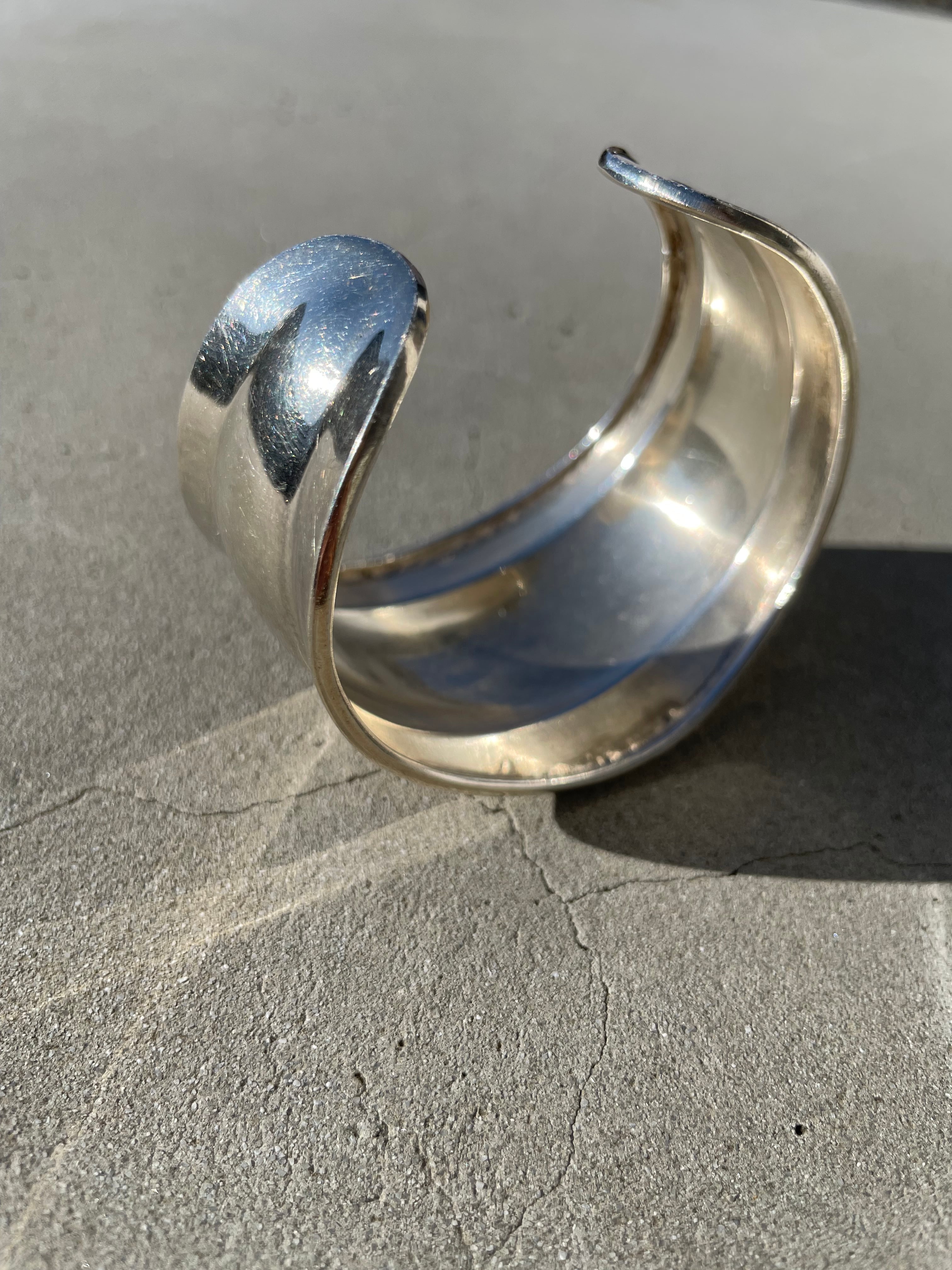 アメリカ仕入れのヴィンテージバングル。存在感がありながら軽く、くびれのあるデザインで個性を発揮しています。925刻印も確認でき、その他大きなダメージはありません。
